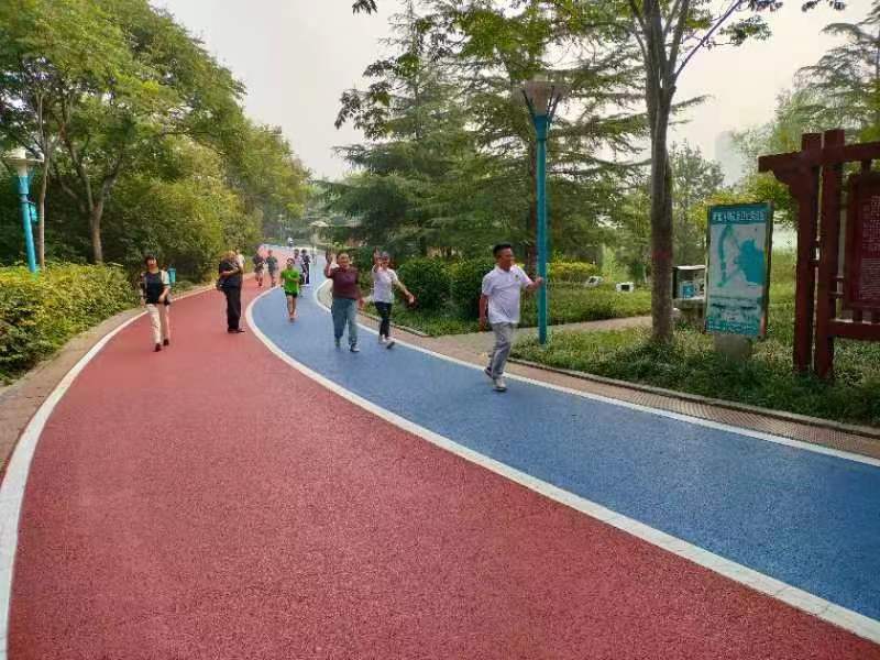 本網訊 初秋的邯鄲,天高氣爽。清晨的龍湖,涼風習習。公園內,彩色的環形跑道,處處歡聲笑語,隨處可見穿著白色T恤衫的“運動健將”揮汗前行。